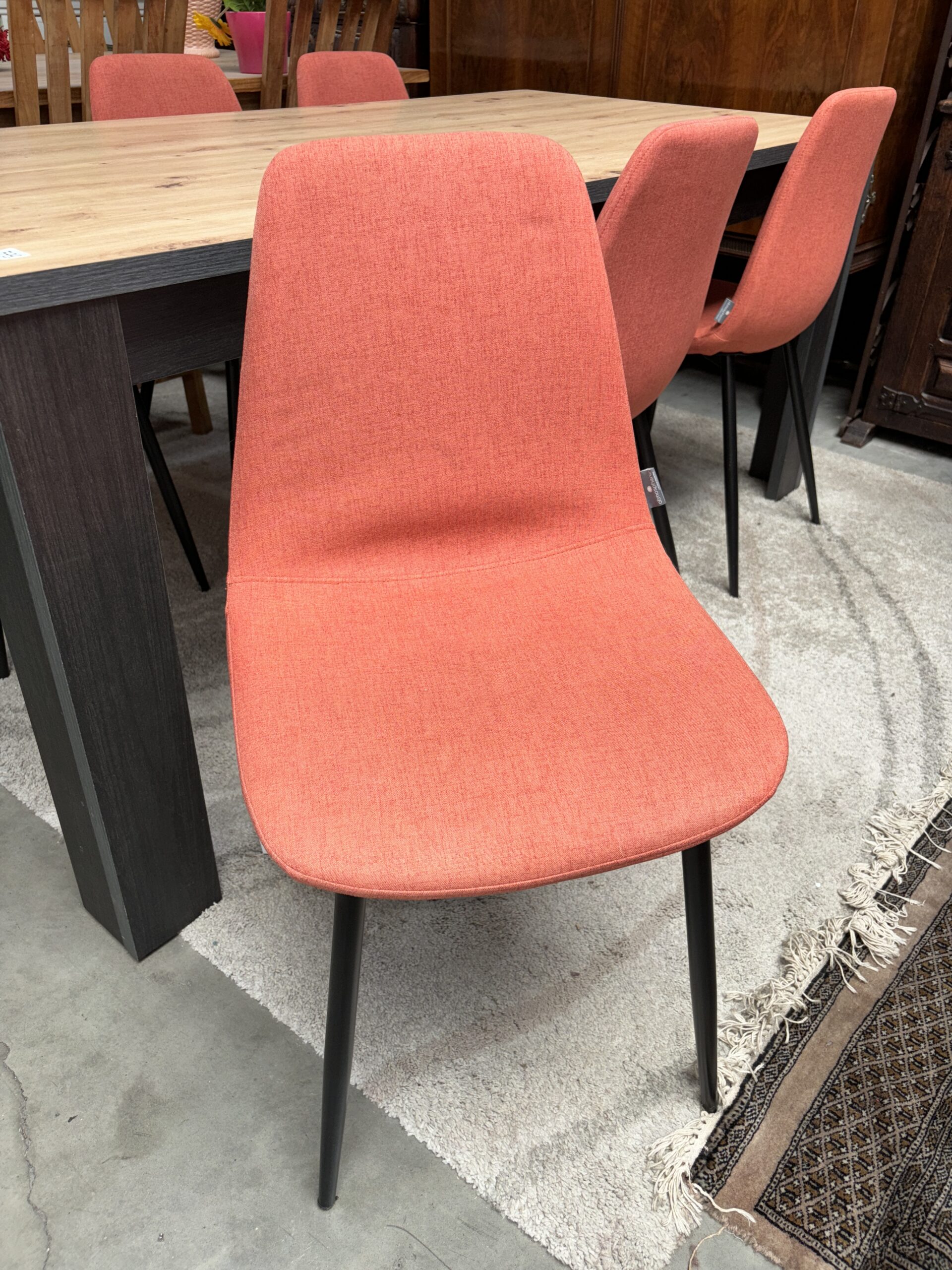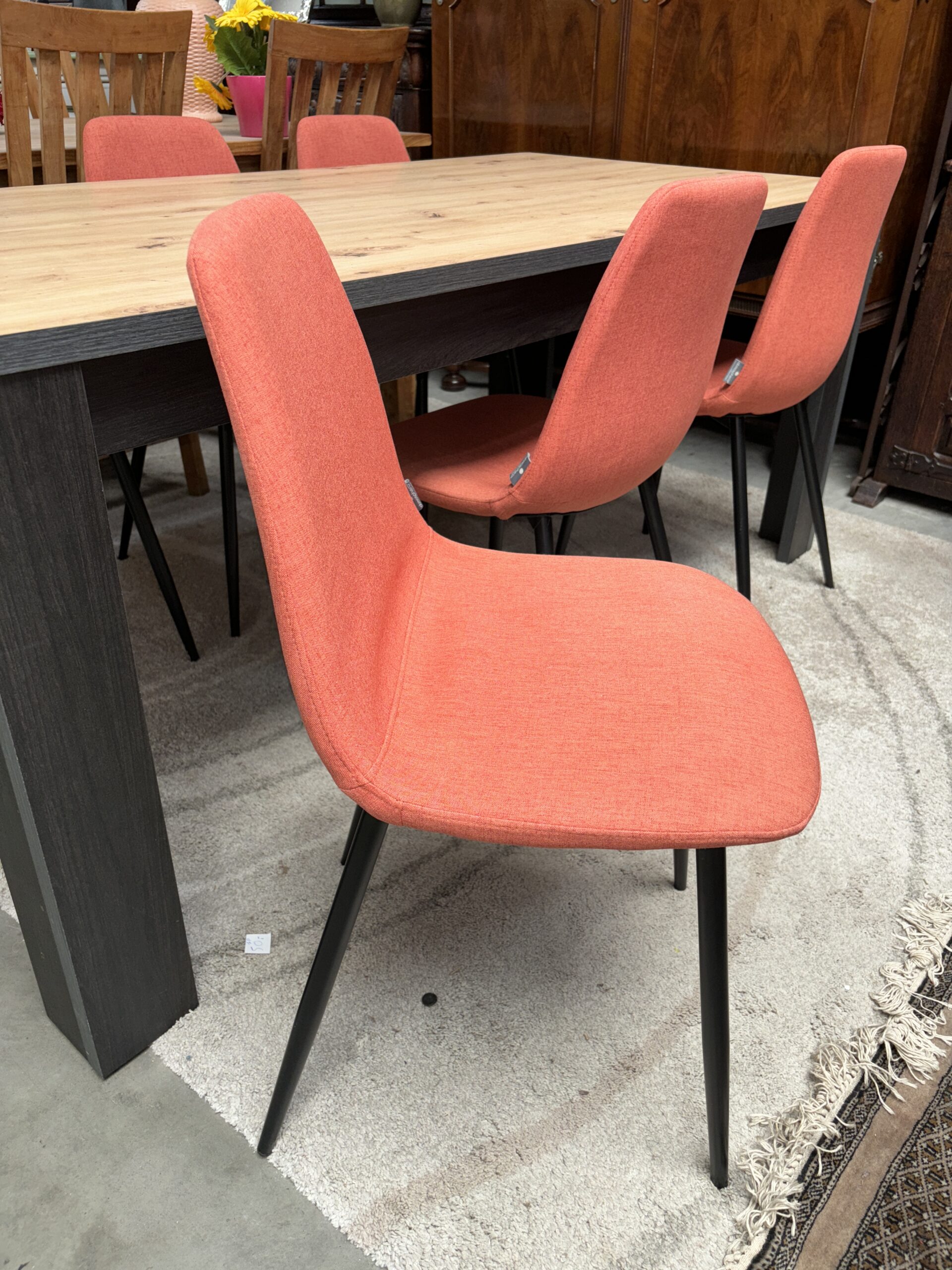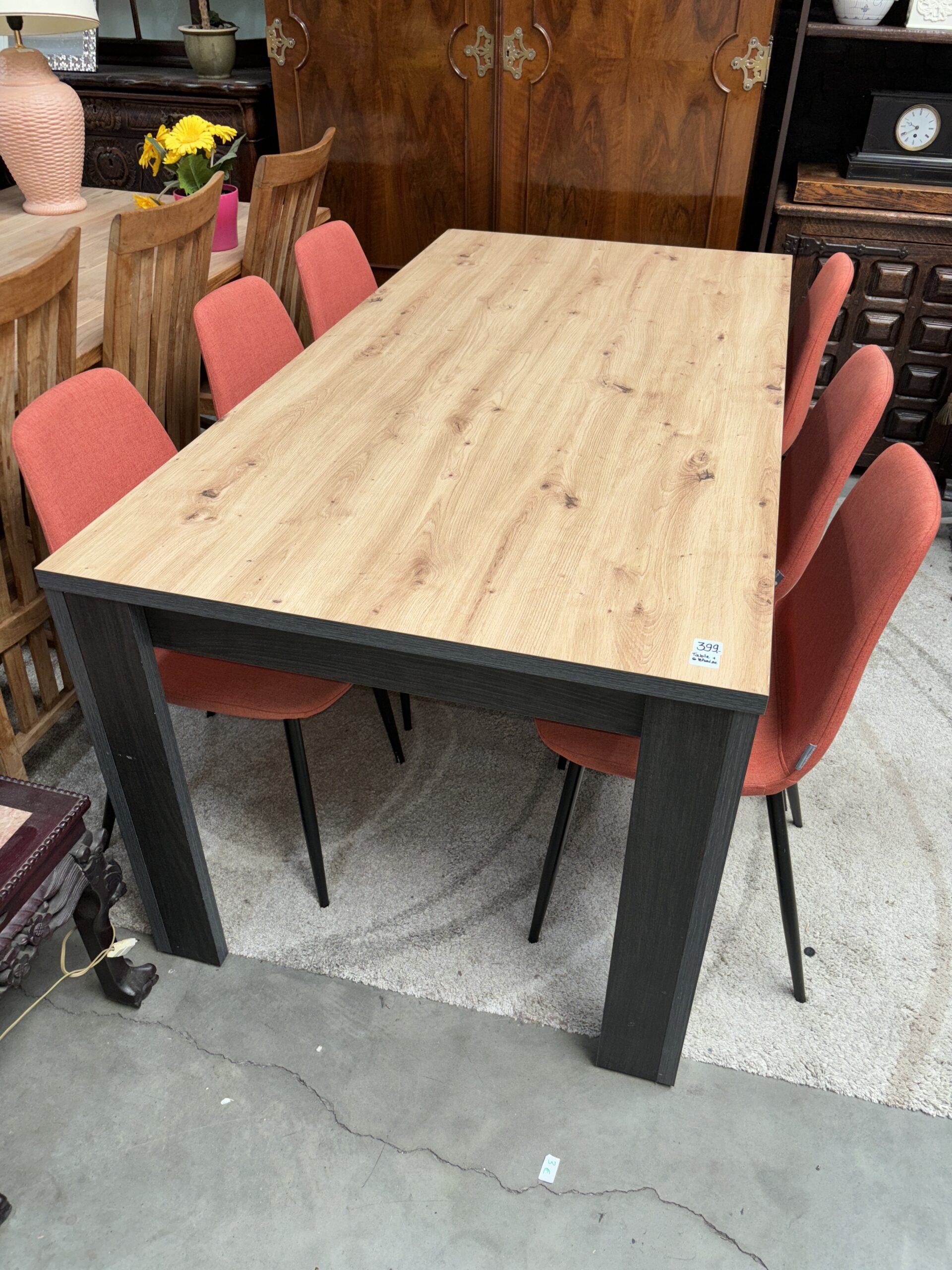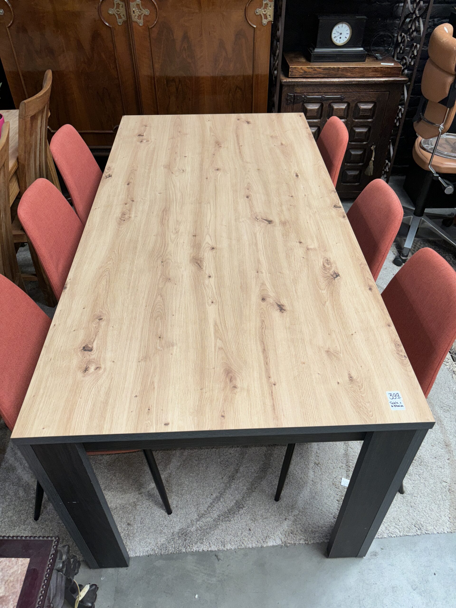 table ronde verre pied bambou + 6 chaises